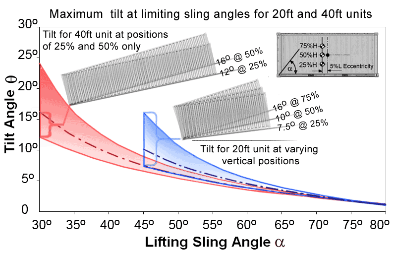 Tilt angle ranges for 20ft and 40ft sling angles.